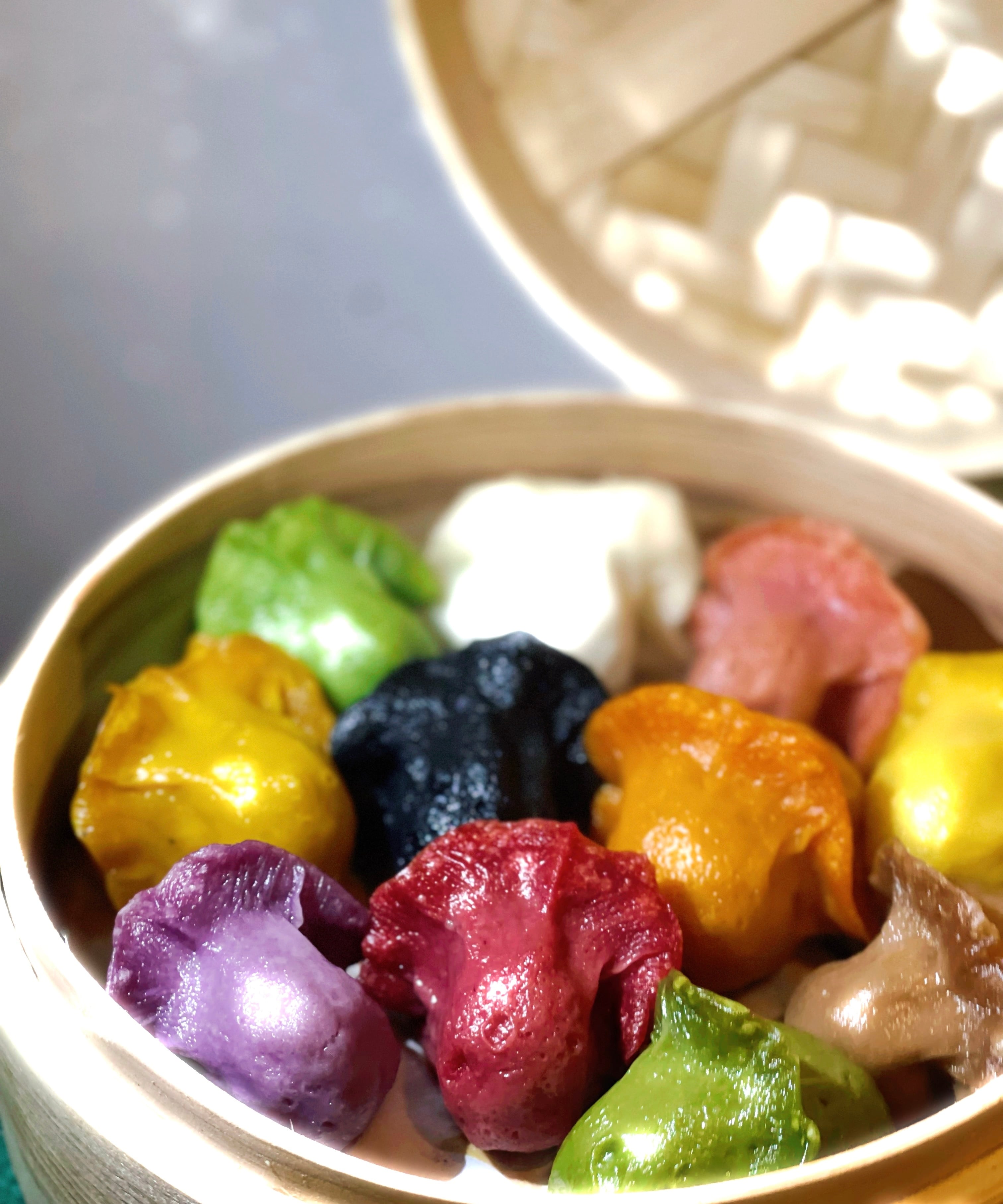 シイタケ餃子3個、シュンギク3個、セロリ餃子3個、ピーマン餃子3個、ニラ餃子3個、ネギ味噌餃子3個、生姜味噌餃子3個、ヴィーガンキムチ餃子 3個、コリアンダー餃子 3個、ナス味噌餃子餃子3個、ニンニク味噌餃子3個